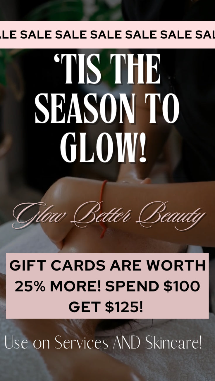 Gift cards are currently worth 25% more! Spend $100 get $125! Spend $200 get $250! You can Use it towards services and skincare.
